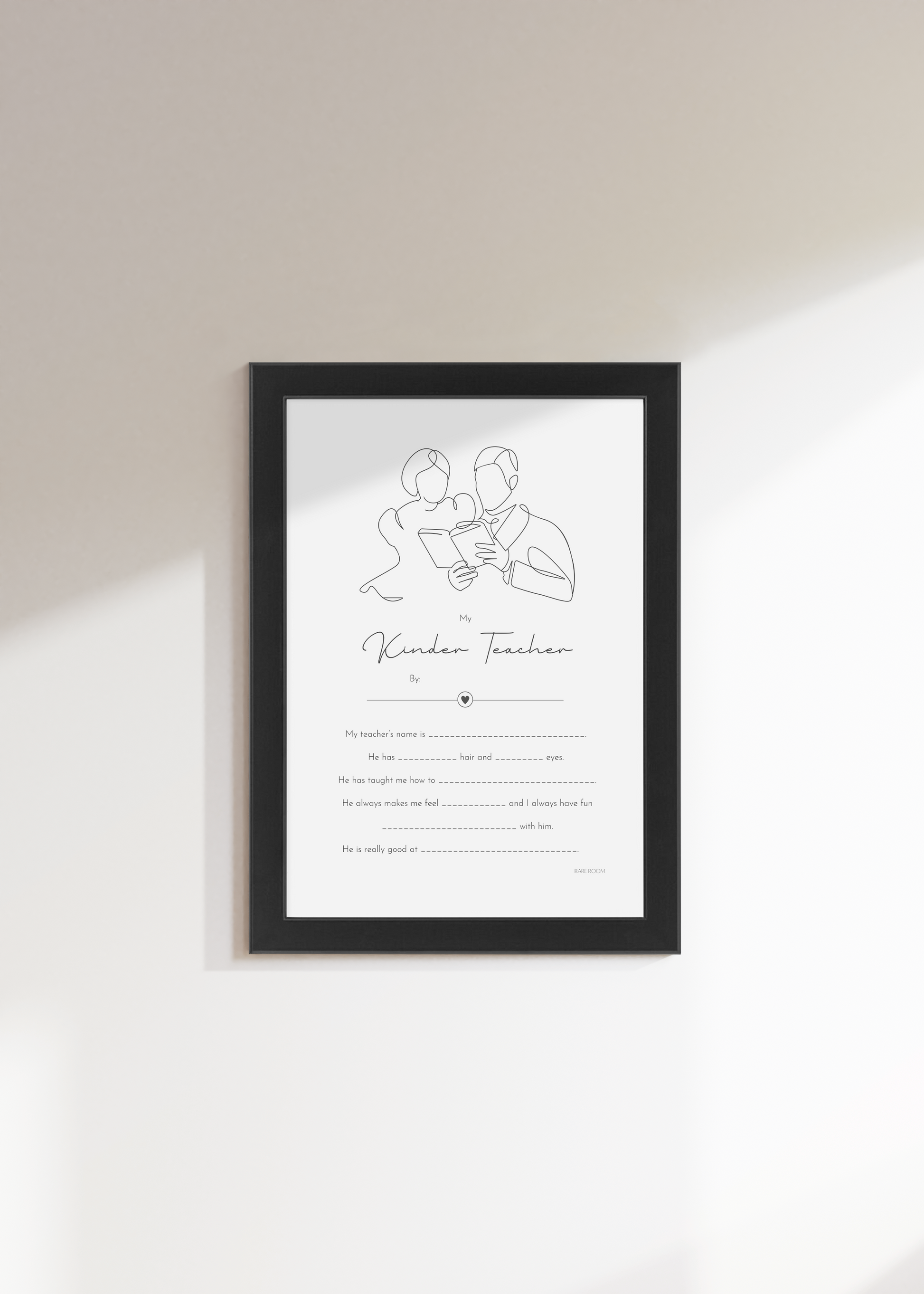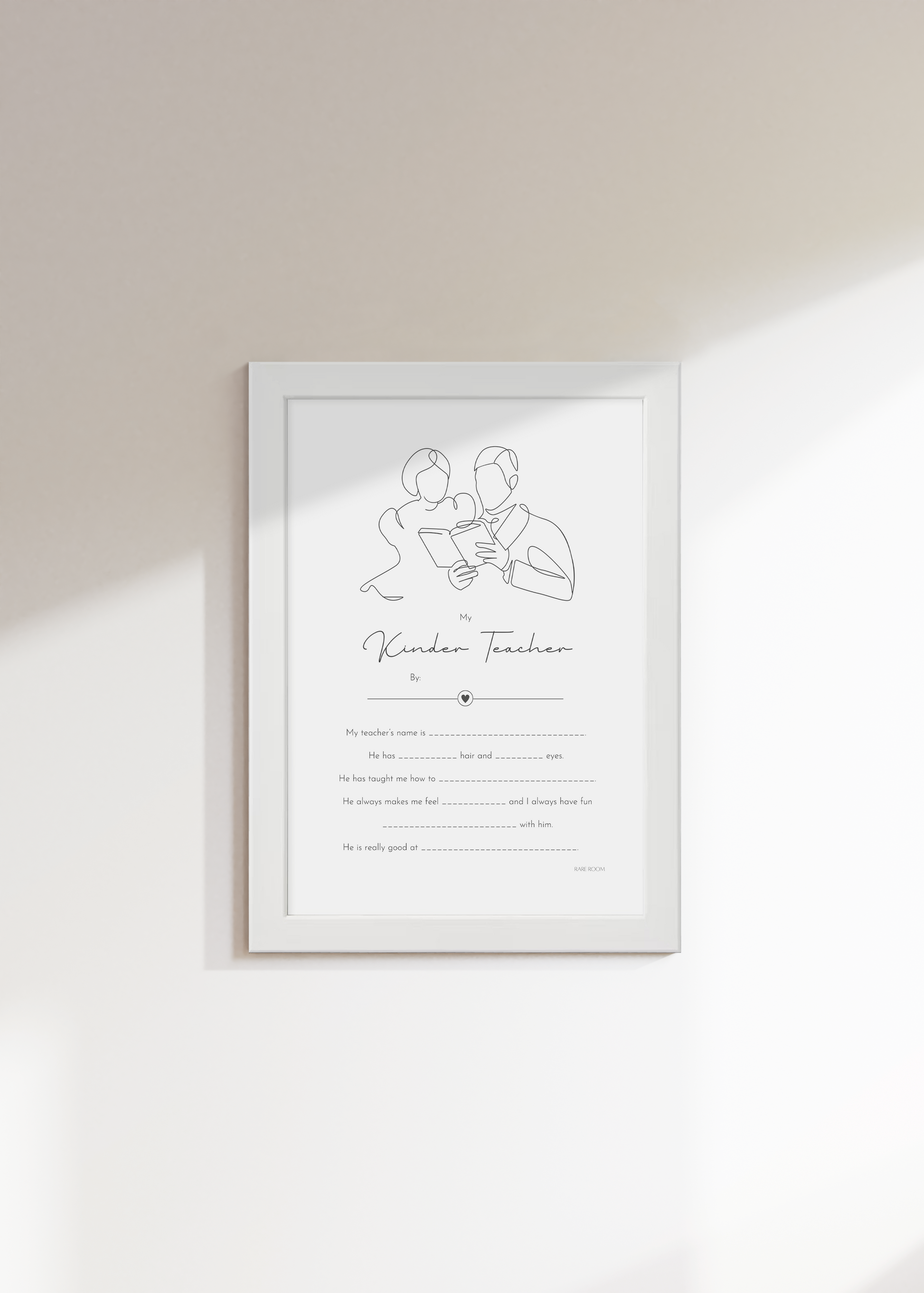 Shop our 'My Kinder Teacher' framed print, a fun and heartfelt keepsake where your child can fill in the blanks with all the special details about their kinder teacher—a meaningful gift that captures the unique bond and appreciation they share.