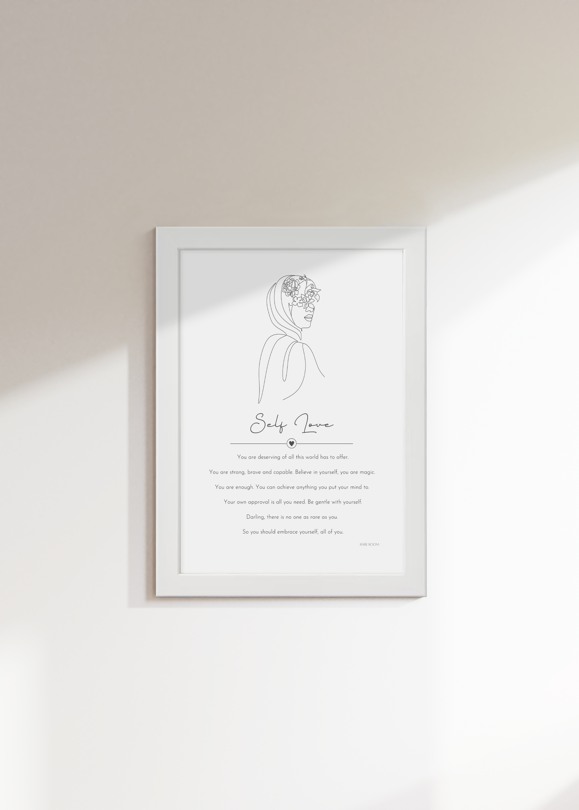 Shop our 'Self Love' framed print, capturing the essence of self-appreciation—a beautiful reminder of the journey you've taken toward embracing and celebrating your true self.