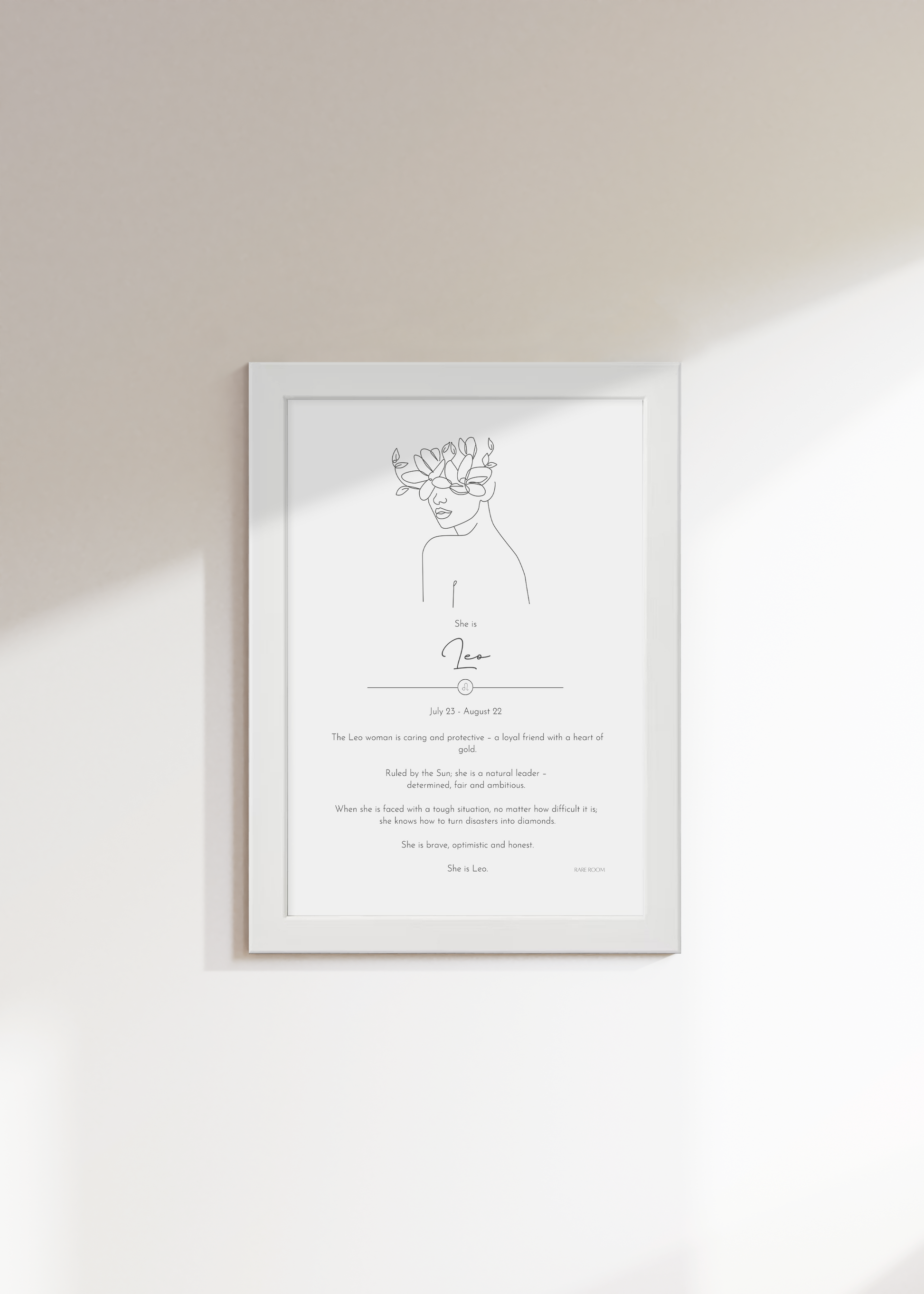 Shop our 'She is Leo' framed print, perfect for you or a loved one born between July 23 and August 22—celebrating the confidence, creativity, and bold spirit of a Leo.