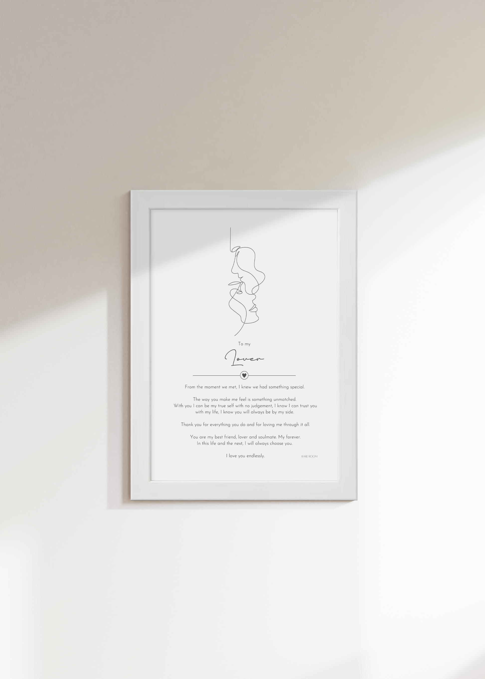 Shop our 'To My Lover' framed print, a heartfelt expression of love and connection—a beautiful reminder of the special bond you share.
