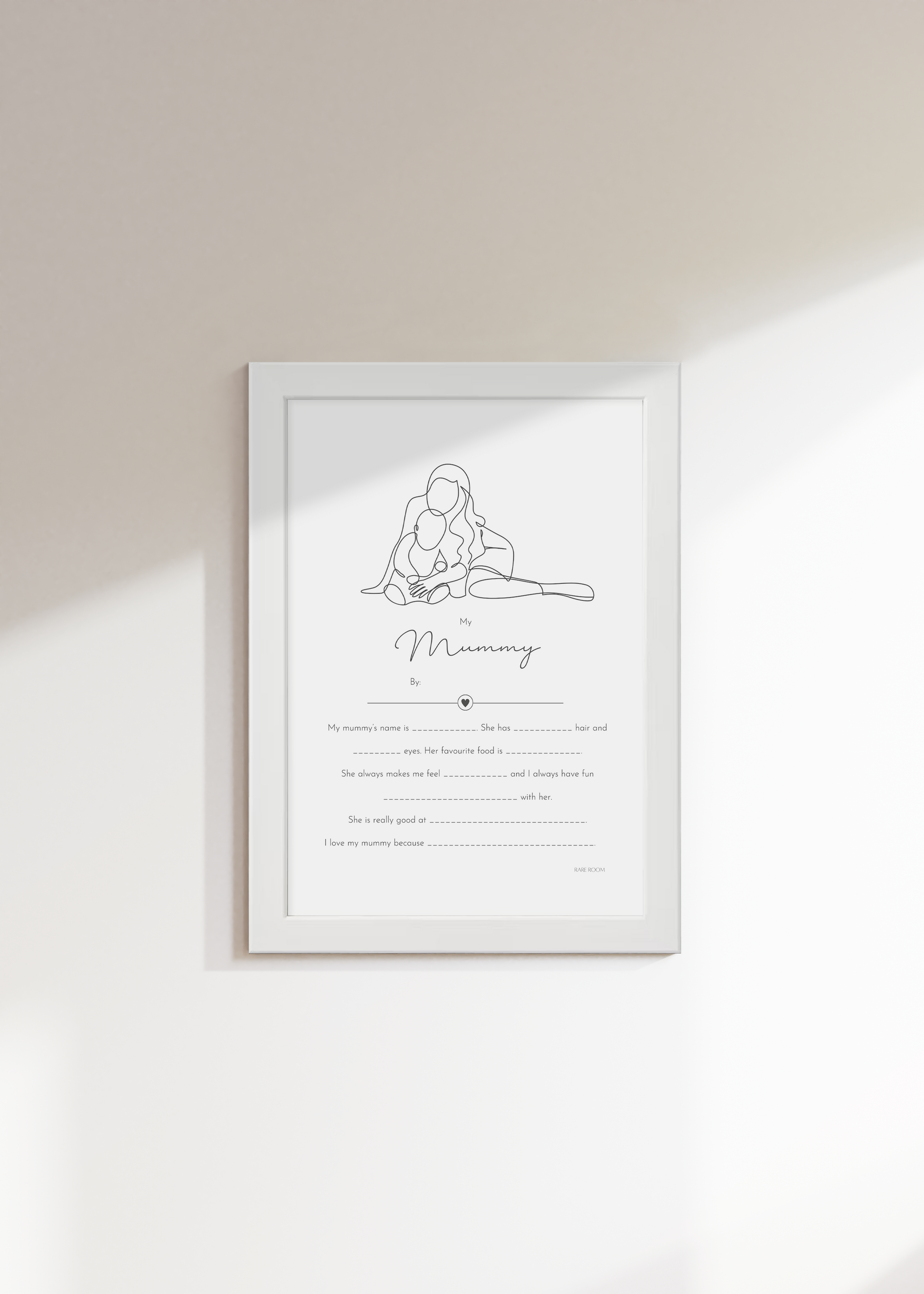 Shop our 'My Mummy' framed print, a personalised keepsake where your child can fill in the blanks with all the special details about their mummy—a sentimental gift that captures the love and admiration they have for her.
